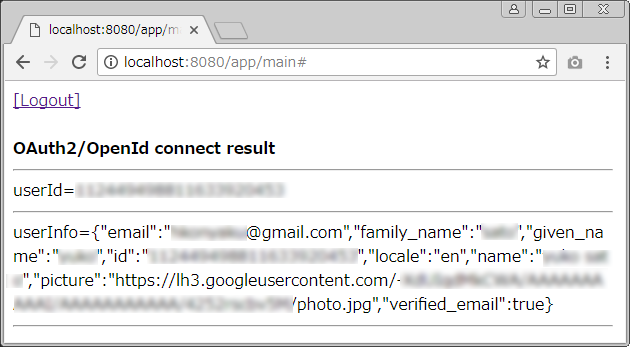 - Click Log out to forget OAuth2 state and set app state "logout"