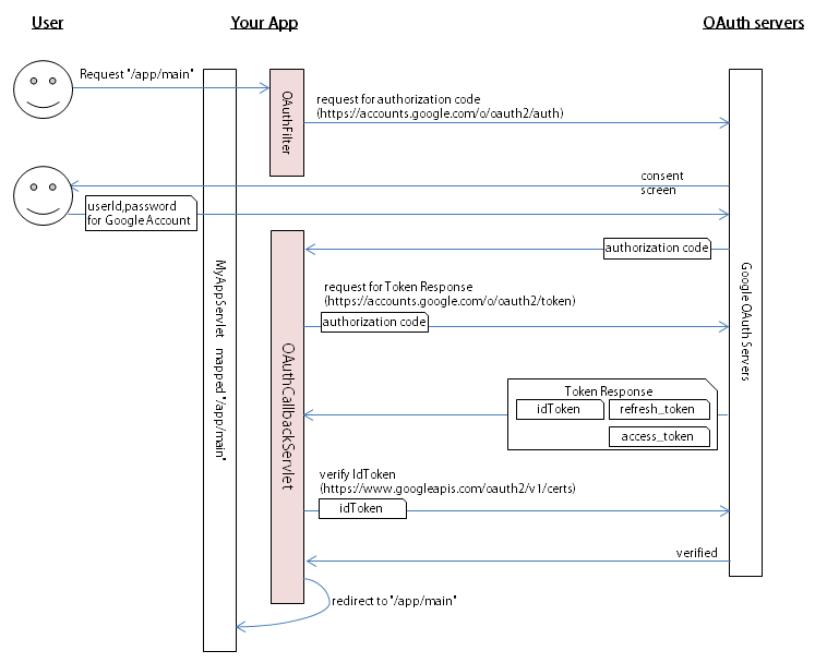 - The main servlet is called after passing the OAuthFilter