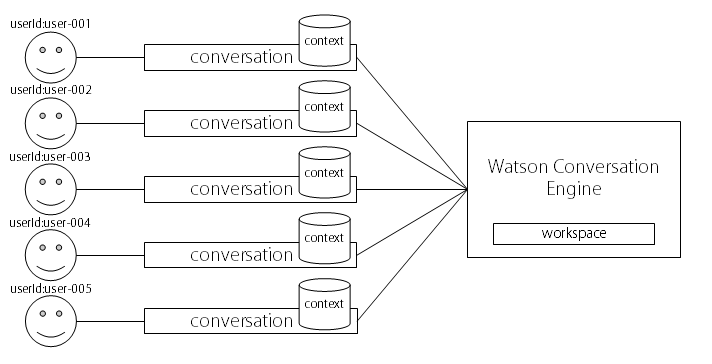 Therefore, as with this example, even one user can access Watson with userID. (In Watson's internal processing, an ID called conversationId is assigned in units of one conversation session rather than a user unit)