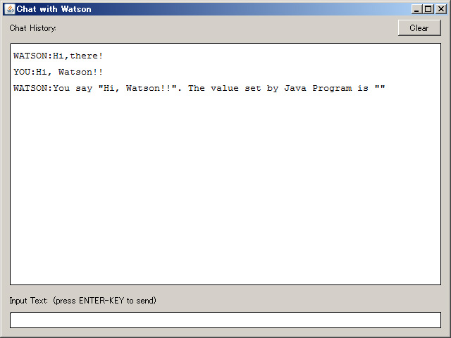 FROM WATSON:You say "Hi! Watson". The value set by Java Program is "I need you!"